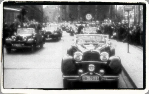 s jours plus tard, le 19 juillet, Hitler fut filmé dans cette voiture avec le numéro de police 148697.
