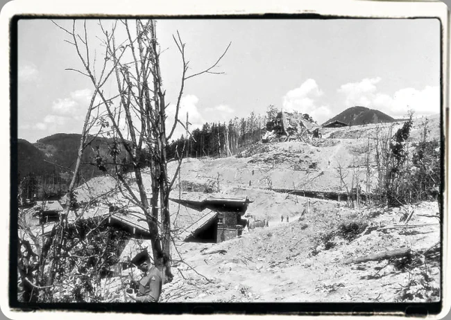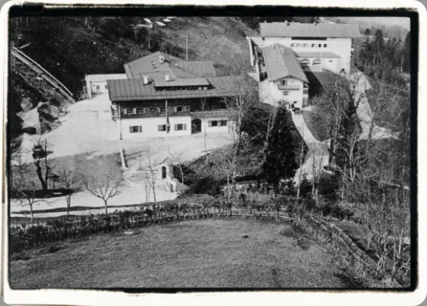La maison de Bormann se situait juste en face du Berghof et fut complètement détruite lors de l'attaque du 25 avril 1945.