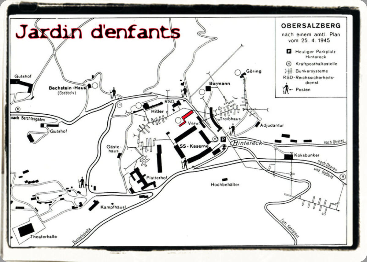 En1940, derrièrel'hôtelzumTürken vitlaconstructiond'ungrandbâtimentconnusouslenom de Kindergarten. Cette appellation peut induire en erreur.Son plan de construction portait la note : "maison pilote".Quelquespiècesetuncouloiràarcadesavecdesjardinsfurenteffectivementutiliséspourgarderlesenfants des chefs du Parti et d'école maternelle pour les familles des résidents de l'Obersalzberg.La grande partie du bâtiment était destiné à stocker des modèles architecturaux.LepluspetitbâtimentàgaucheétaitlebâtimentFilmarchiv,quiservaitdelieudestockagepourlesfilms qui ont été montrés au Berghof, Theaterhalle et SS-Kaserne.Pour la protection et la sécurité des films, une installation particulièrement coûteuse fut réalisée.Dansunesuitedepetitsabrissetrouvaientencastréesdesarmoires,protégéesindividuellementcontrela foudre et le feu par un système de paratonnerres.L'édifice fut rasé par le bombardement de 1945 et ses ruines enlevées en 1952. Les fondations demeurèrent visibles jusqu'en 2002.