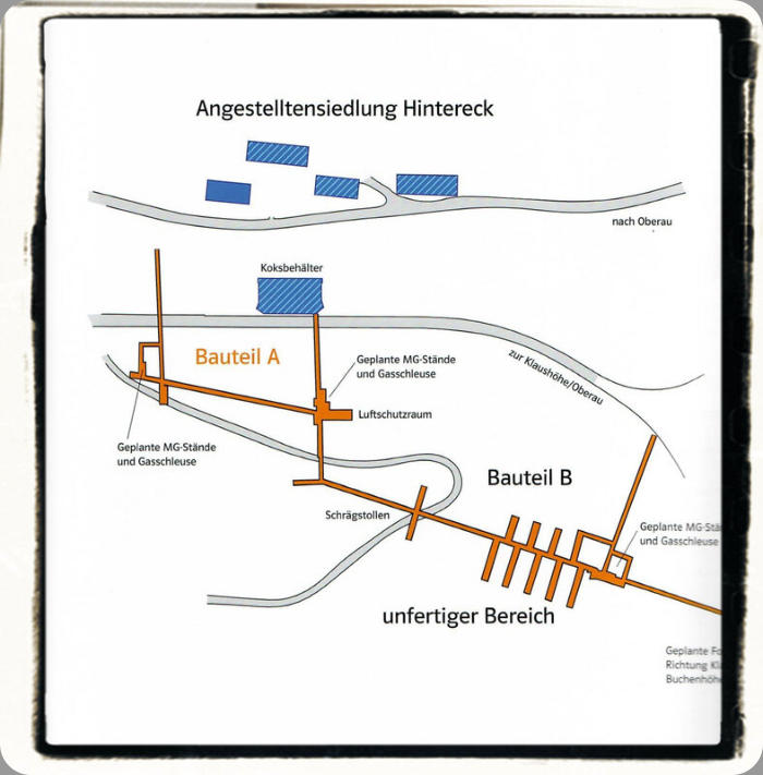 Sous la direction d'ingénieurs allemands, des ouvriers italiens et tchèques commencèrent la construction d'un abri anti-aérien.
