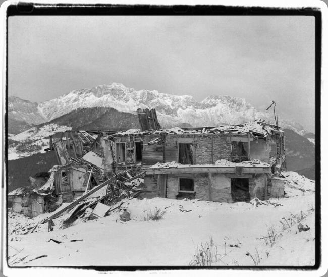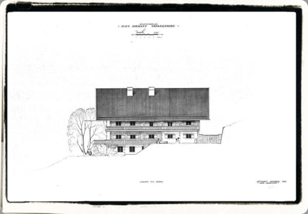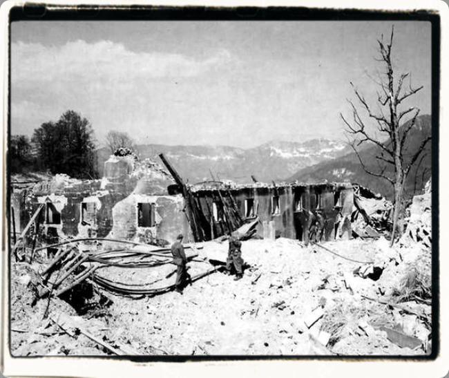 La maison de Bormann se situait juste en face du Berghof et fut complètement détruite lors de l'attaque du 25 avril 1945.